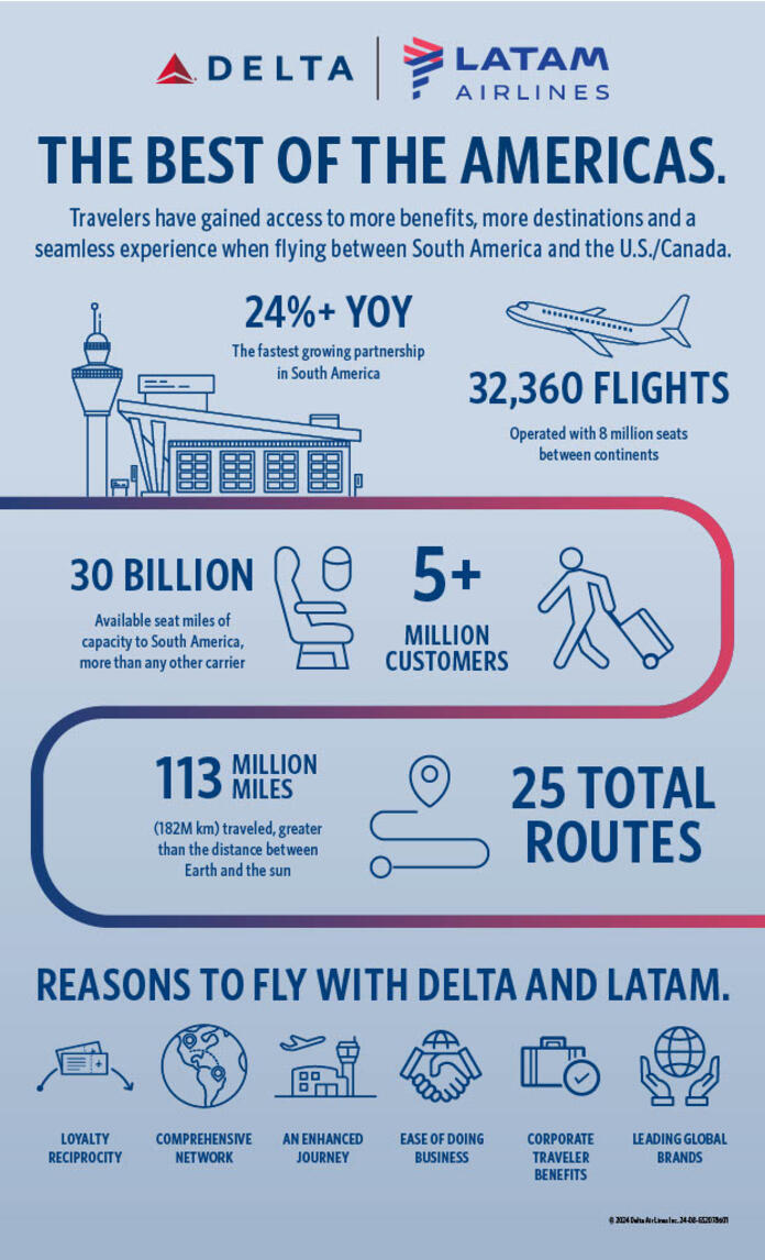 Delta and LATAM expect to continue announcing new routes and greater benefits in the coming months to further enhance the travel experience for those traveling between North America and South America.