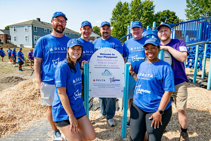 On Saturday, September 14, more than 100 Delta and local community volunteers came together to build Delta’s 41st KABOOM! playground and the second in the greater Boston area. Delta partnered with the Revere Housing Authority to build a playground to serve hundreds of children in the Revere community.