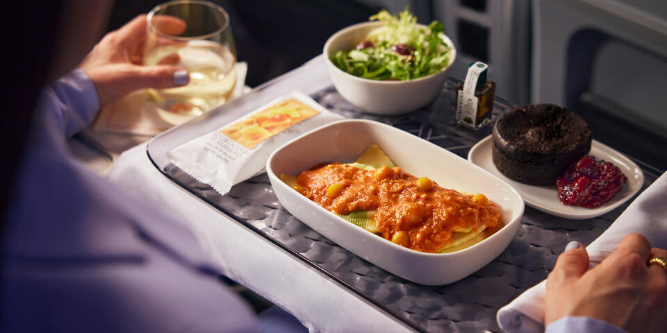 デルタ・プレミアムセレクトのお客様は、ご出発の7日前から24時間前まで、Fly Delta(フライ・デルタ)のアプリまたはご出発前に送られるe-メールに記載されたリンクから、お好きなメインディッシュを選ぶことができ、また後日変更することもできます。