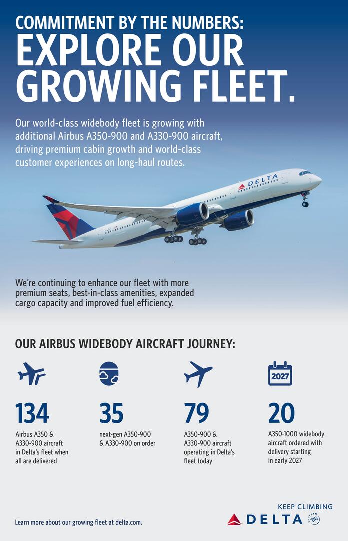 “As we grow our international footprint and prepare our fleet to serve expanded long-haul markets, these aircraft will enhance our capabilities and elevate our premium offerings,” Chief Executive Officer Ed Bastian said. “We value our long-standing partnership with Airbus, and with these widebody aircraft we will see long-term growth and cost benefits for years to come.”