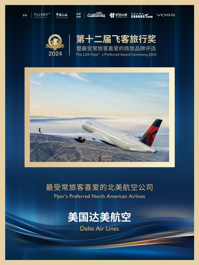 达美航空近日获得由最大中文常旅客社交网站FLYERT飞客(FLYERT.com)颁发的飞客旅行奖“2023年度最受常旅客喜爱的北美航空公司”荣誉。