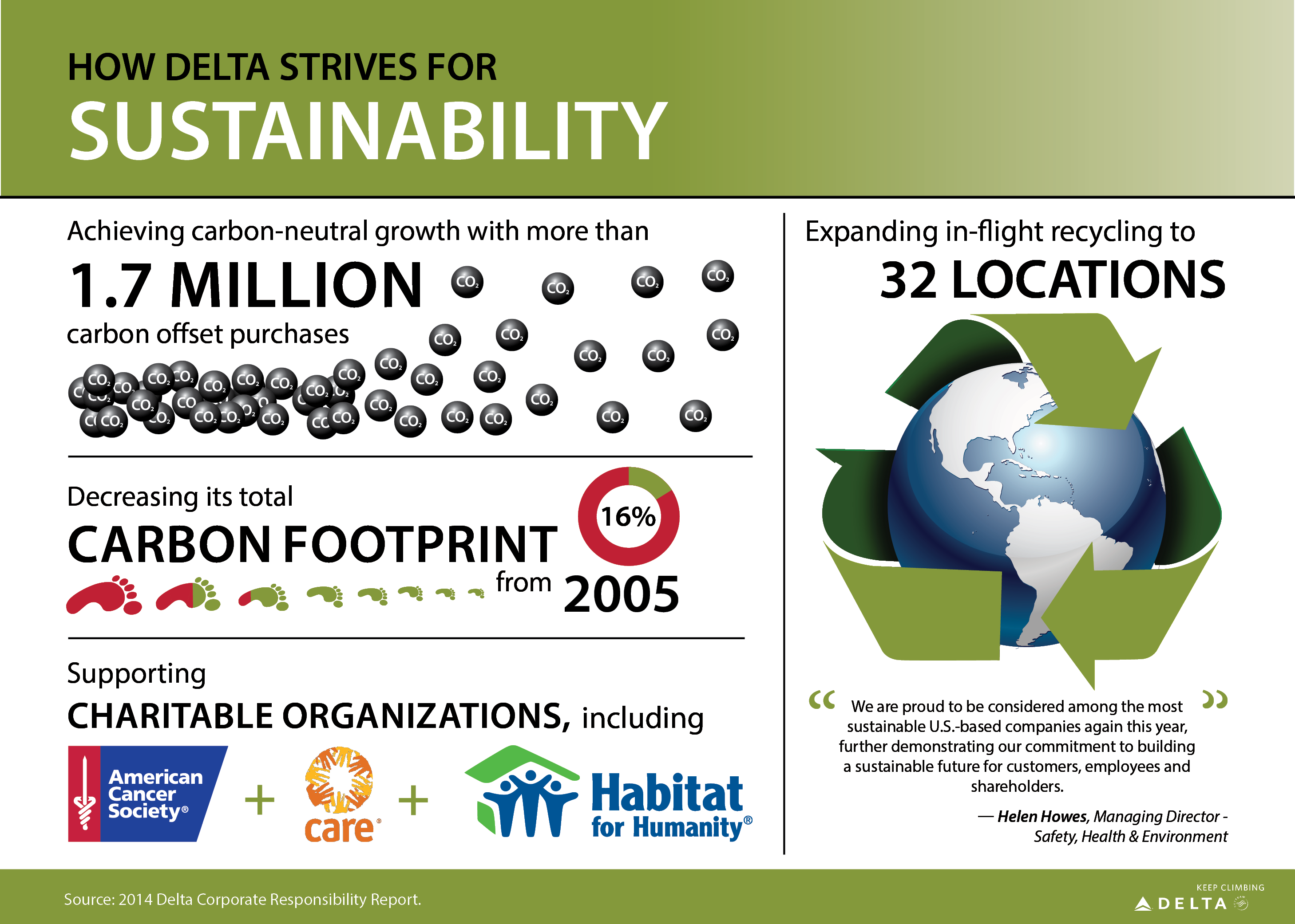 Delta’s sustainability highlights include: