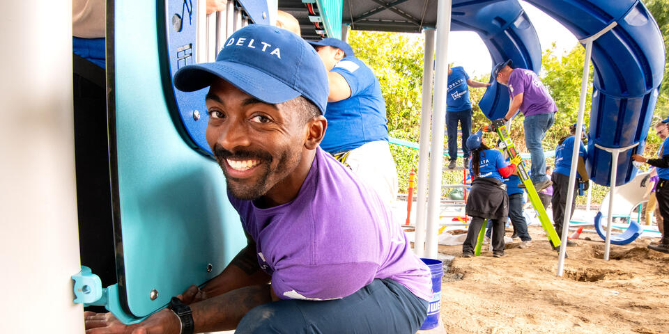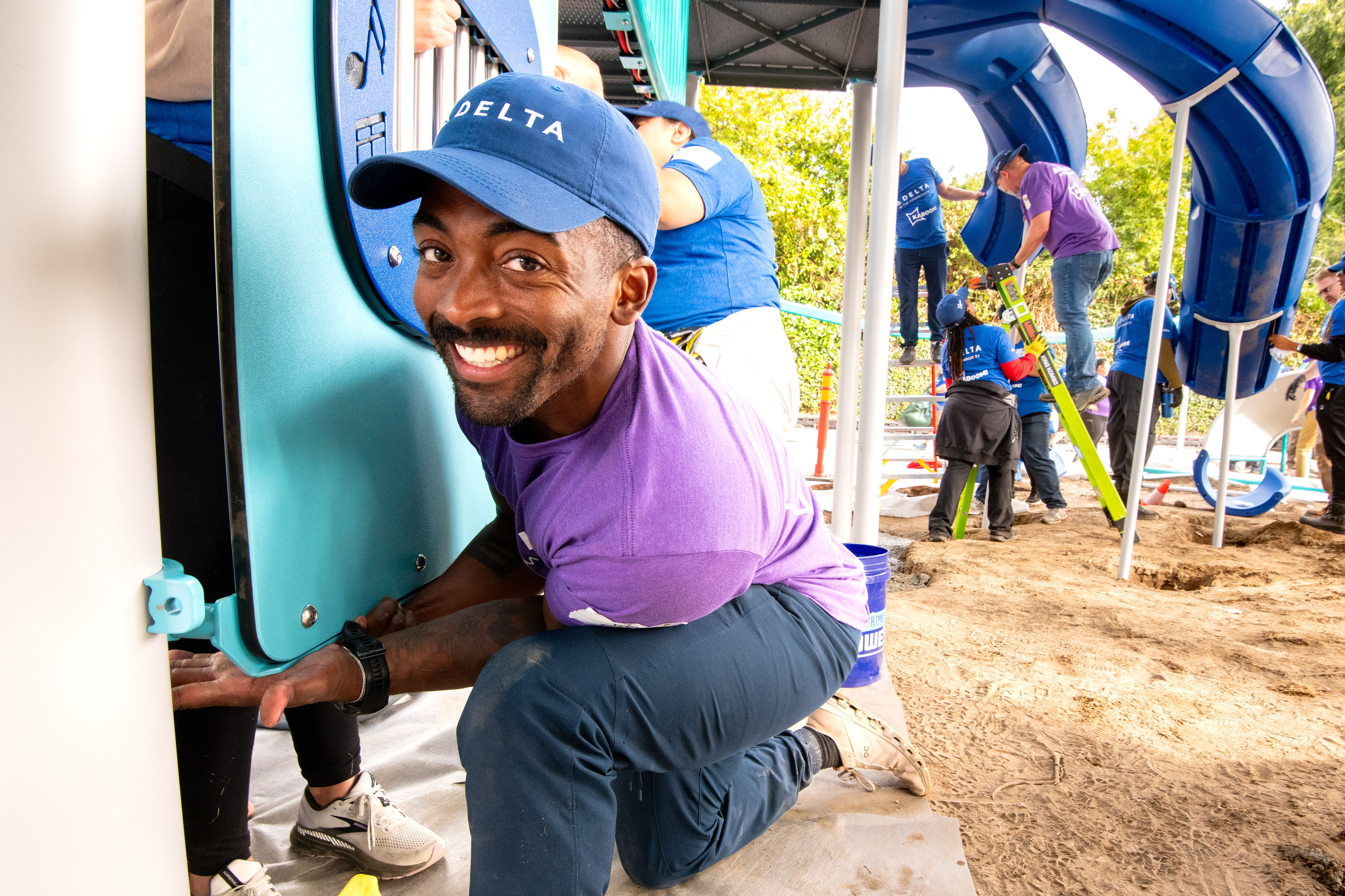 Delta is proud to support KABOOM! in its goal to end play space inequality by uniting with communities to build intentional play spaces that spark joy and foster a sense of belonging for children who are often denied opportunities to thrive. Delta volunteers have helped build 45 KABOOM! playgrounds across the country since the partnership began in 2013.