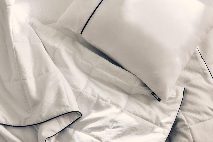 全新Missoni設計的Delta One寢具組包括:以Missoni經典鋸齒紋做暗花設計,並以海軍藍細節點綴的高雅白色羽絨被和素面枕頭。此外達美航空還將其廣受歡迎的床墊墊片(同時也可作為腰靠枕)延伸至所有包含「達美至臻商務艙」的航班上,並為長途航班增設記憶泡棉抱枕。這組全新寢具組將於今年夏季在包含「達美至臻商務艙」的國際航班上推出,並計劃於年底前在所有包含「達美至臻商務艙」的航班上全面推出。此外,升級版的Missoni海軍藍拖鞋也將於下半年推出。