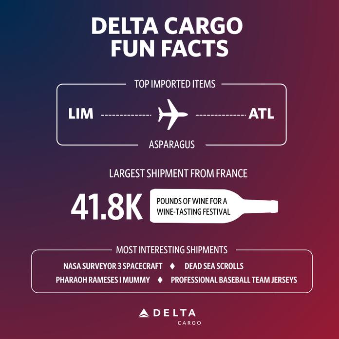 Delta Cargo started with mail service in 1934 and began scheduled cargo services 11 years later – with the first item being freshly picked mushrooms. Since then, the Cargo team has shipped thousands of items all around the world and transported over 11 million pieces of cargo last year.