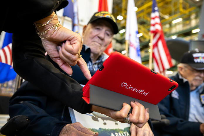 GrandPad, a Minnesota-based company dedicated to serving seniors, teamed up with Delta and the Best Defense Foundation to provide their senior-friendly tablet to the WWII veterans who participated in the 2024 Return to Normandy program. The tablet features a simple, intuitive layout with large, easy-to-read icons. With just a few taps, the veterans can safely stay connected with family, their friends at Delta and each other. Delta’s community volunteers are actively hand-delivering the tablets to each veteran.