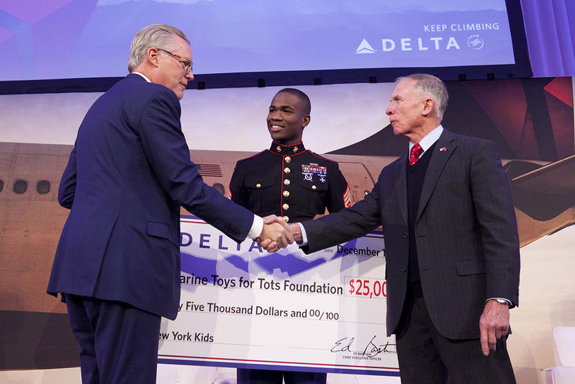 Ed Bastian presents check to Toys for Tots