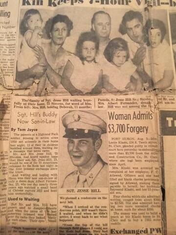 Coverage in the local paper remembering Sergeant Jesse Hill (Johnnie) and noting nuptials.