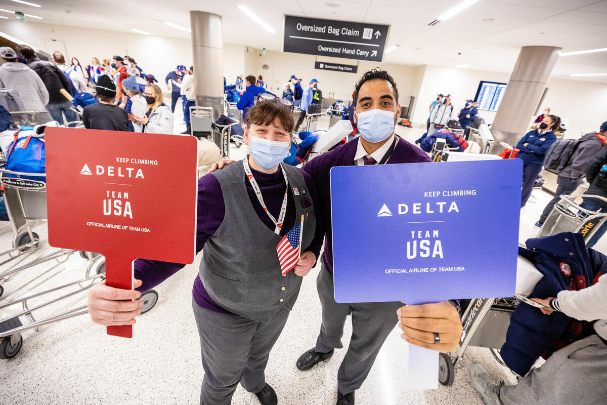 Delta welcomed Team USA athletes at Salt Lake City International Airport in Salt Lake City, Utah on Monday, February 21, 2022.