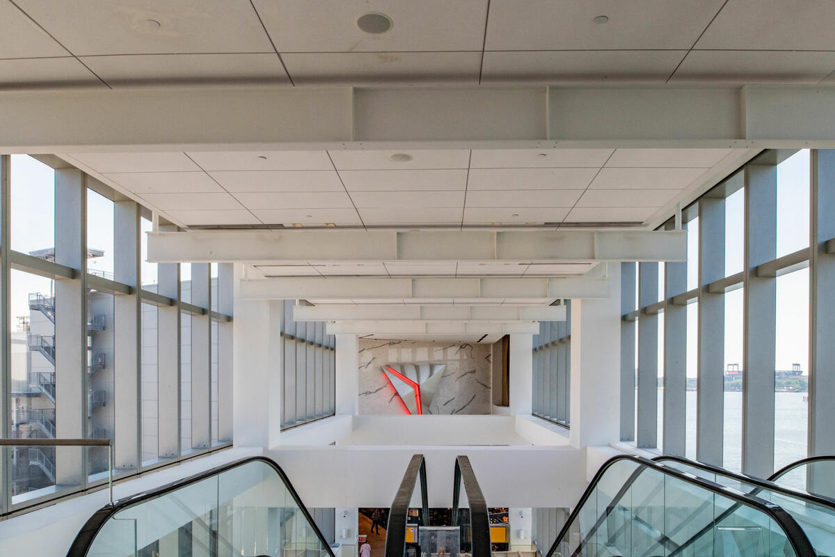 View looking down the escalator at Delta's terminal at LaGuardia Airport
