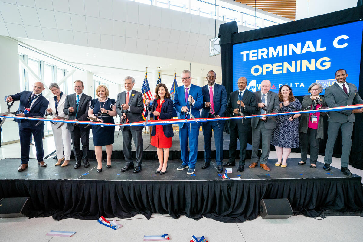 Ribbon cutting at the opening of Delta's terminal at LaGuardia Airport
