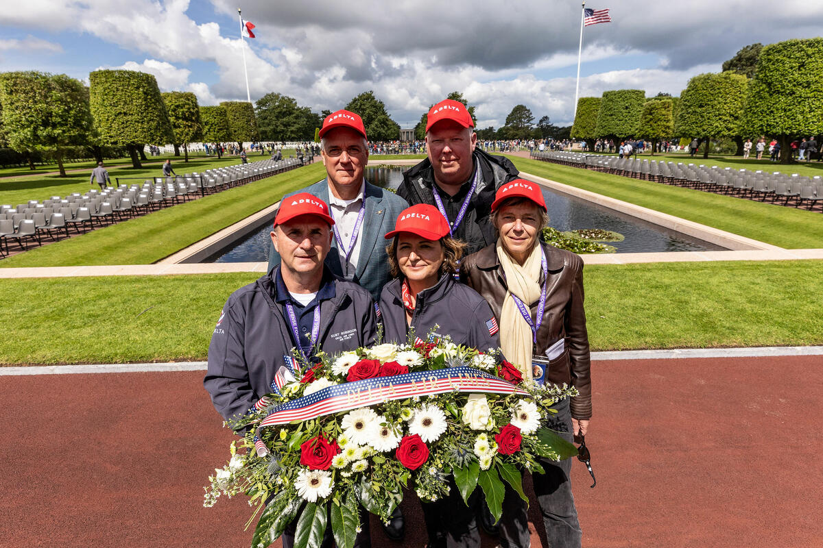 Delta’s Kurt Robinson, Virginie Durr, Beatrice deRotalier, Chris Jones and Paul Hassenstab at Normandy American Cemetery and Memorial on D-Day.
