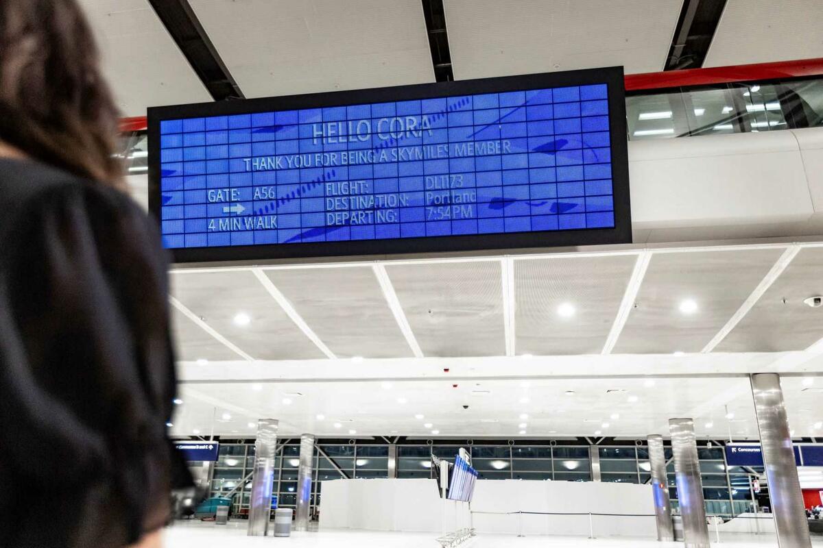 A female customer, Cora, viewing a Parallel Reality monitor.
