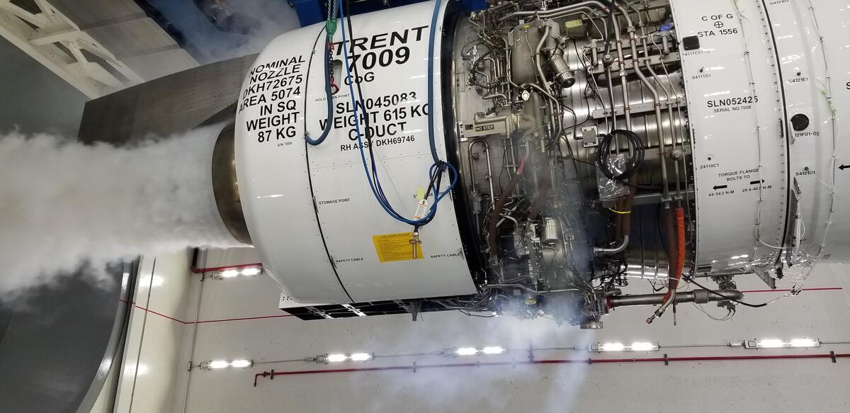 Rolls-Royce Trent 7009 aircraft engine test inside Delta Jet Engine Test Cell