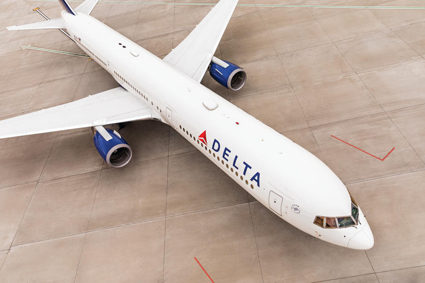 Delta's Boeing 767-400 model, over 200 feet long, navigates the runway for takeoff.