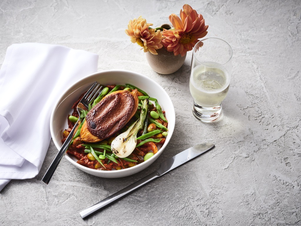 Vegan Vegetable Tagine with roasted sweet potato and chermoula