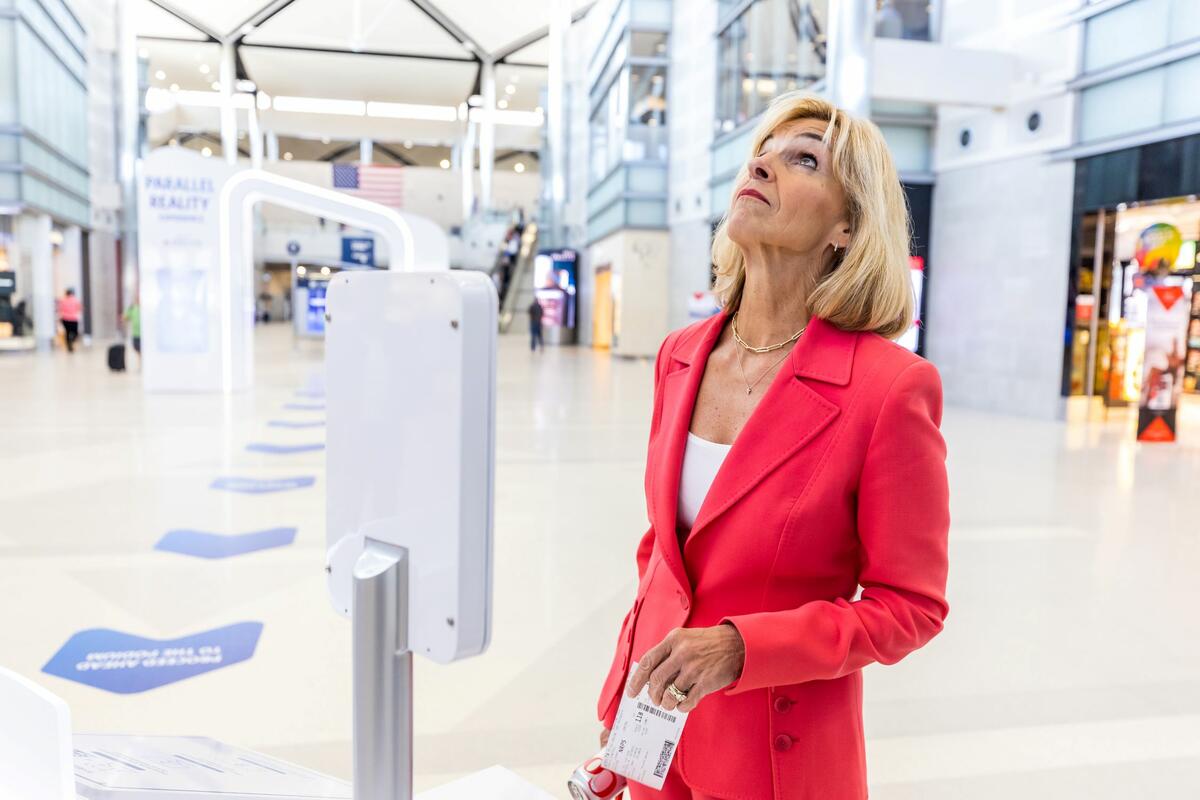 Chief Customer Experience Officer Allison Ausband visits the Parallel Reality experience at the Detroit Metropolitan Wayne County Airport.