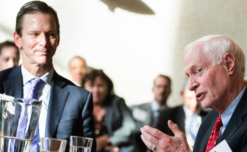 Peter Carter, Delta's E.V.P. and Chief Legal Officer & Corporate Secretary, looks on as Elliott Seiden speaks in October 2022 at a roundtable discussion at the Embassy of the Netherlands in Washington, D.C. Seiden was one of the architects of the world's first Open Skies agreement.