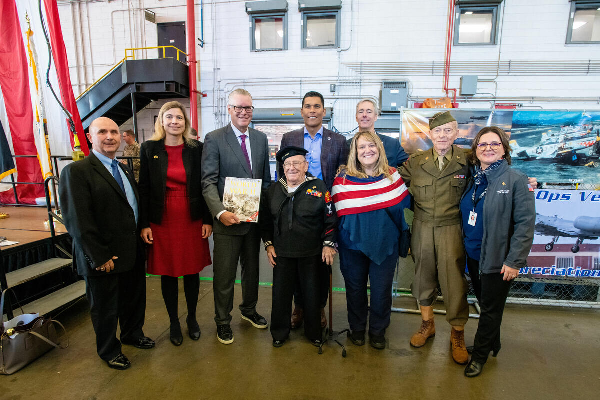 Pictured from left to right: Kurt Robinson, President of Delta’s Veterans BRG; Anne-Laure Desjonquères, Consul General of France in Atlanta; Ed Bastian, Delta CEO; Gil Nadeau, WWII veteran; Donnie Edwards, Founder and President of Best Defense Foundation; David Chapman, Michelin’s V.P. – Government and Defense Sales and former attaché to the U.S. Embassy in Paris; Christian Taylor, the director of the film “The Girl Who Wore Freedom”; Andre Chappaz, WWII veteran; Virginie Durr, Delta Enterprise Sales Manager.