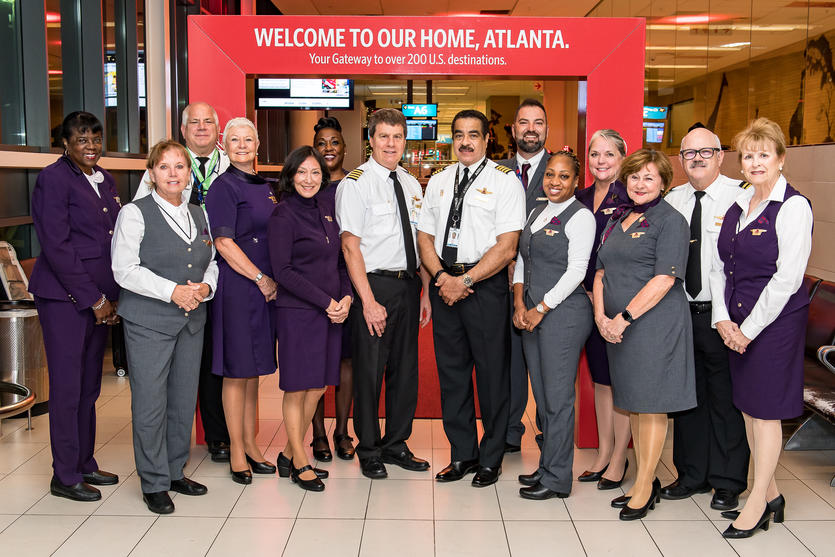 A Delta Flight Crew including pilots and flight attendants celebrate the airline's first flight from Cape Town, South Africa to Atlanta, Georgia, United States.