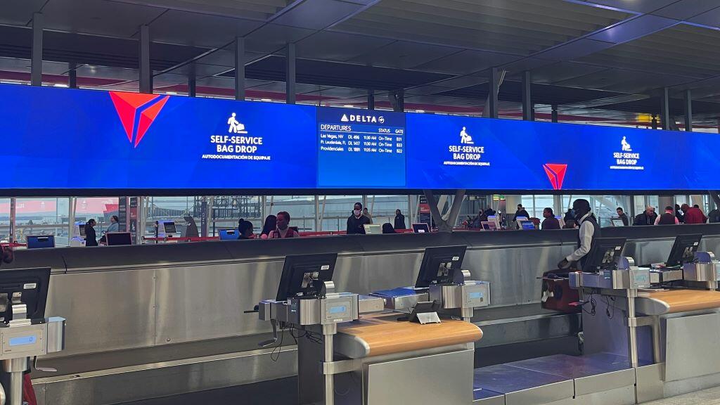 Delta's updated bag drop area at its newly consolidated Terminal 4 in New York City - JFK utilizes the latest technology to improve efficiency during busy travel times.