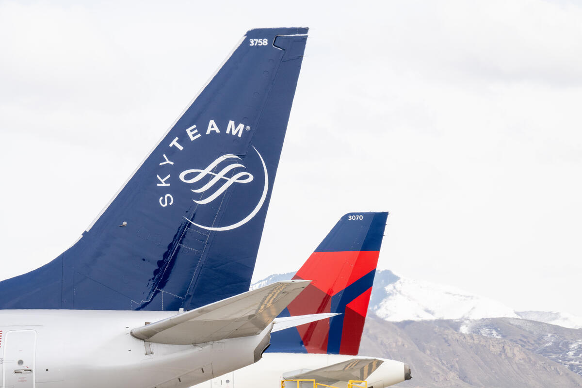 A Delta Air Lines 737-800 in SkyTeam livery is seen at Salt Lake City International Airport (SLC). Delta is a founding member of the SkyTeam alliance.