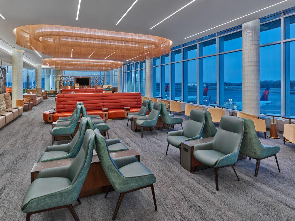 Along with seating for more than 450 customers, additional amenities in the Delta MSP G-Club include three kiosks for quick and easy self-check-in, a full buffet, two premium bars and three soundproof booths for quiet work.