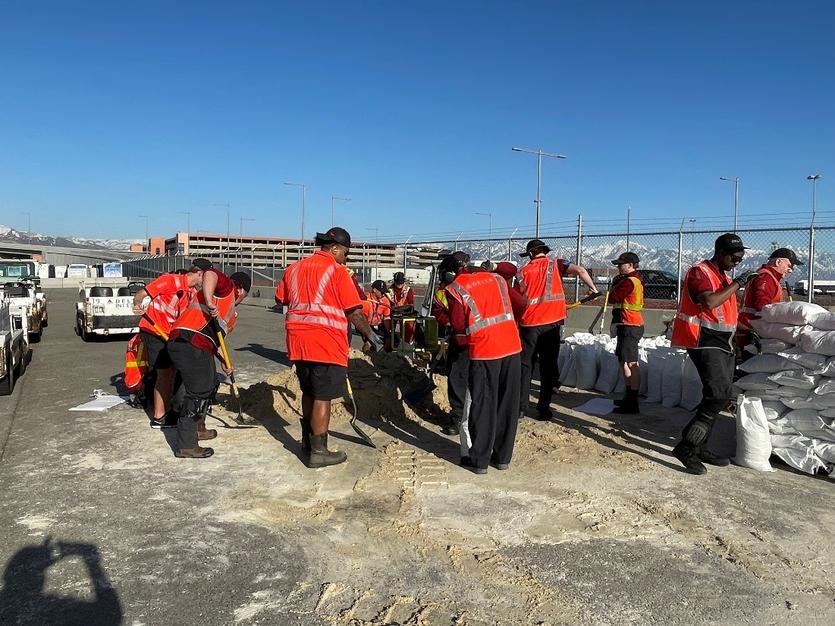 Following historic snowfall in Salt Lake City, residents are experiencing emergency flooding conditions. To mitigate the impact of flooding, community officials are working to fill thousands of sandbags to protect structures from water damage. In partnership with Salt Lake City International Airport, Delta employees volunteered April 15-16, 2023, to contribute over 1,300 sandbags to the city.