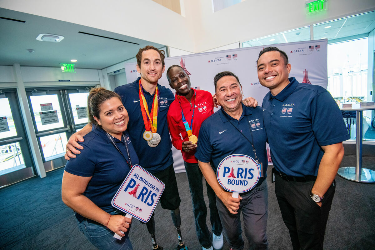 Delta people, customers and friends celebrate the departure of Delta Flight 290 from Los Angeles International Airport (LAX) to Paris Charles de Gaulle Airport (CDG).