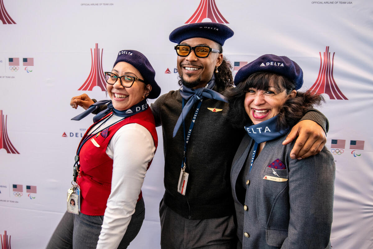 Delta people, customers and friends celebrate the departure of Delta Flight 290 from Los Angeles International Airport (LAX) to Paris Charles de Gaulle Airport (CDG).
