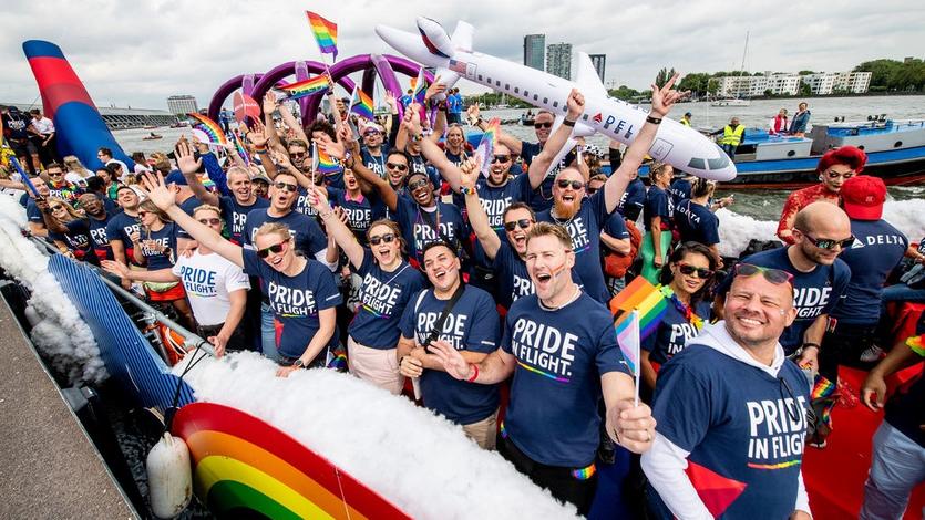 Delta Air Lines people were proud to join the Canal Parade, one of the highlights of the Amsterdam Pride festival, on Saturday, Aug. 5. This was the first time the airline has taken part in the colorful event, which attracted thousands of spectators along the city’s canals.