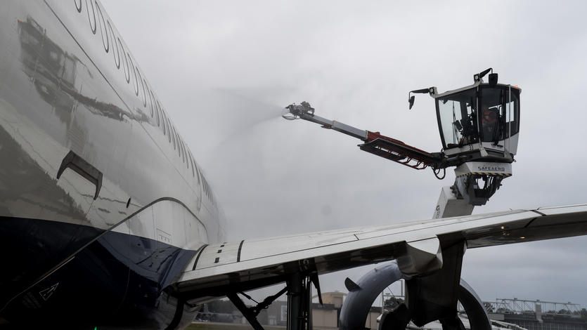 A mock deicing of plane in MSP for Delta's deicing summer boot camp