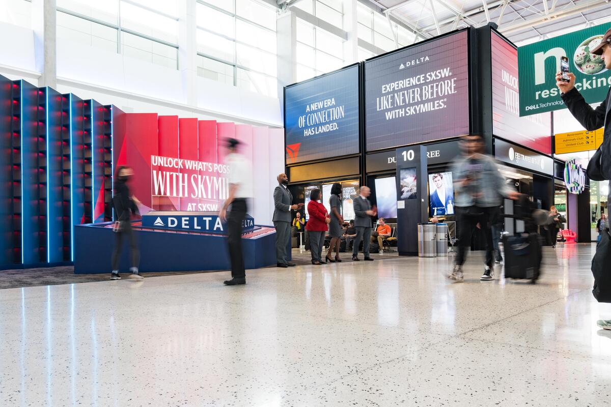 Delta Air Lines SkyMiles Welcome activation invites visitors from all over the world to Austin-Bergstrom Airport to SXSW 2024.