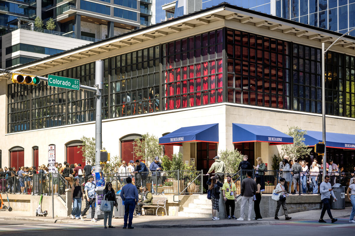 Visitors eagerly wait to enter the Delta Lounge, a branded pop-up experience exclusively for SkyMiles members featuring fast, free Delta Sync Wi-Fi, global fan-favorite beverages from Delta partner Starbucks, custom limited-edition Delta x SXSW merch, and more.