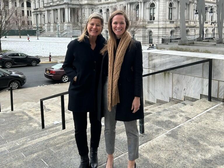 Delta Chief Sustainability Officer Amelia DeLuca (right) with Patricia Ornst, Managing Director - Government Affairs, outside the New York Capitol in Albany.