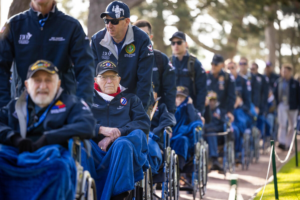 WWII Veterans pay tribute to the comrades and friends at Normandy American Cemetery.