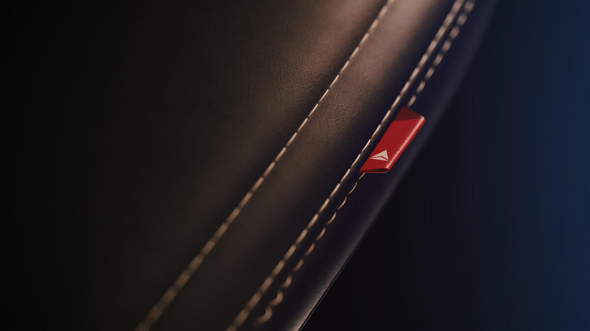 A close-up detail shot of the dress cover for Delta's cabin interior redesign