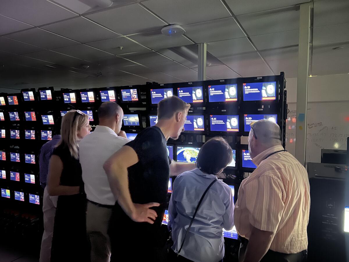 Members of the Advisory Board on Disability test Delta's new flight map in the In-Flight Entertainment lab.