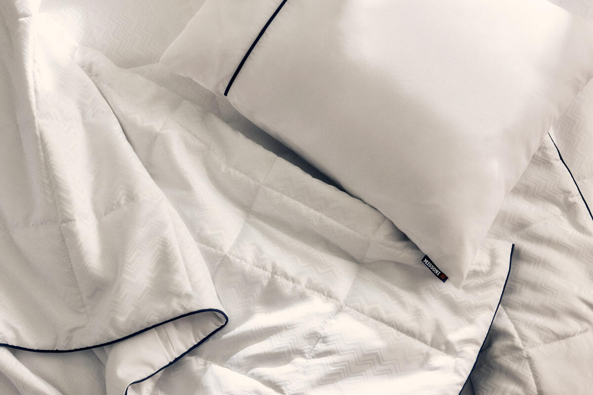 The new Delta One bedding set will include the Missoni duvet and white sleeping pillow, which feature a subtle and elegant Missoni zigzag design and navy accents.