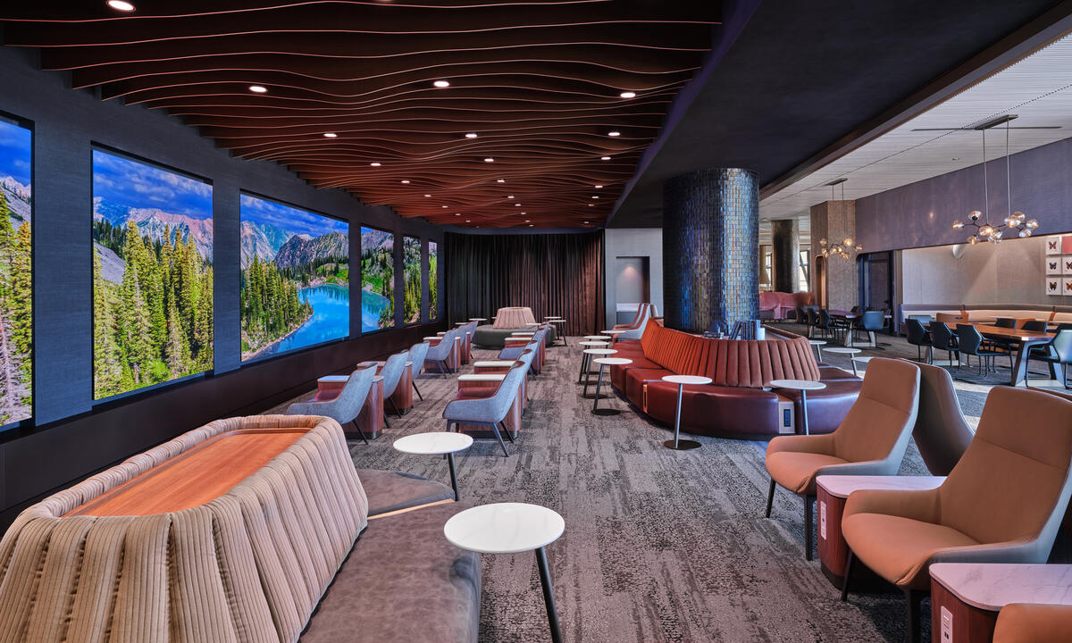 The Digital Immersion wall—a first for Delta—surrounds guests with panoramic visuals of Utah’s iconic landmarks, paired with nature sounds for a calming, 4D experience.
