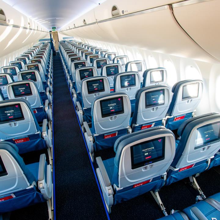- All cabins have in-seat power and 1,000+ hours of free seatback entertainment through Delta Studio, including movies, series, live satellite TV, curated playlists, podcasts and a wide selection of games.