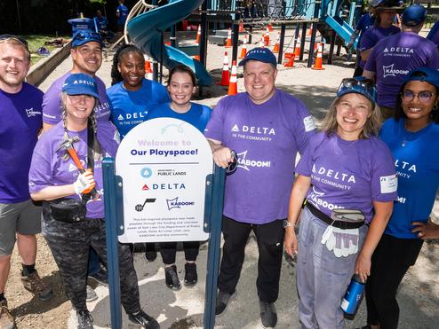 On Saturday, June 1, more than 150 Delta and local community volunteers came together to build Delta’s 39th KABOOM! playground and the second in the Salt Lake City (SLC) area.
