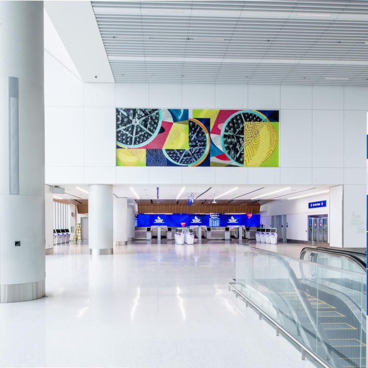 Lounge artwork, including artists from the United States, Philippines, South Africa, Haiti, Japan and more, represents the global reach of this coastal hub.