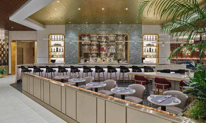 로스앤젤레스의 자연과 건축물에서 영감을 받은 라운지의 색상 테마는 남부 캘리포니아의 풍경을 연상시키며, 가죽과 호두색으로 포인트를 준 석양빛 색상이 아이콘 바(Icon Bar)를 돋보이게 만들었다. 베르데 에메랄드 쿼츠와 오닉스 소재의 후면 바에는 해안가의 광활한 분위기를 담았다. 아이콘 바의 반짝이며 특색 있는 천장으로 태평양의 장엄함을 표현했다.