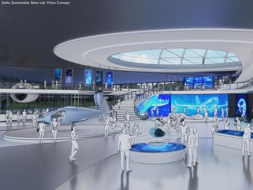 The Delta Sustainable Skies Lab, depicted in the vision concept above, will bridge the gap between fledgling ideas and proven innovation by focusing on clean fuel, efficient flying operations, revolutionary fleet concepts and sustainable travel & business practices.