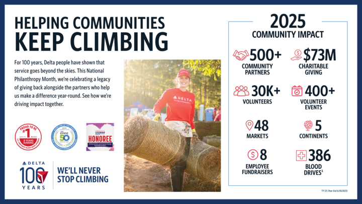 For National Philanthropy Day (Nov. 15) and Philanthropy Month, Delta joins organizations around the world in recognizing the spirit of generosity and the power of collective impact on communities we support.