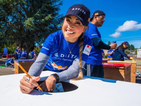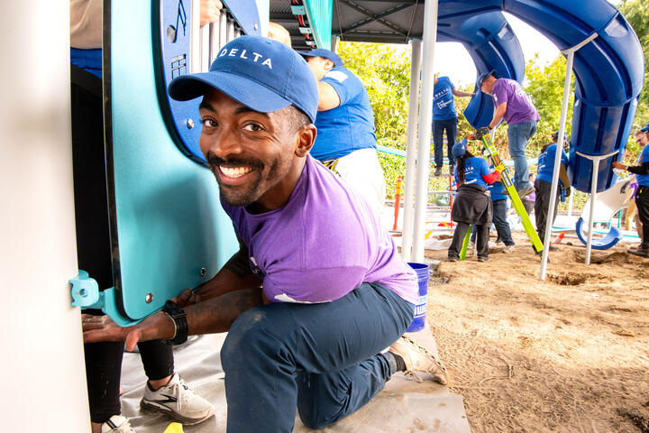 On Saturday, Sept. 27, more than 100 Delta employee and local community volunteers, including the Seattle Seahawks, came together to build Delta’s 45th KABOOM! playground and sixth in the Seattle area.
