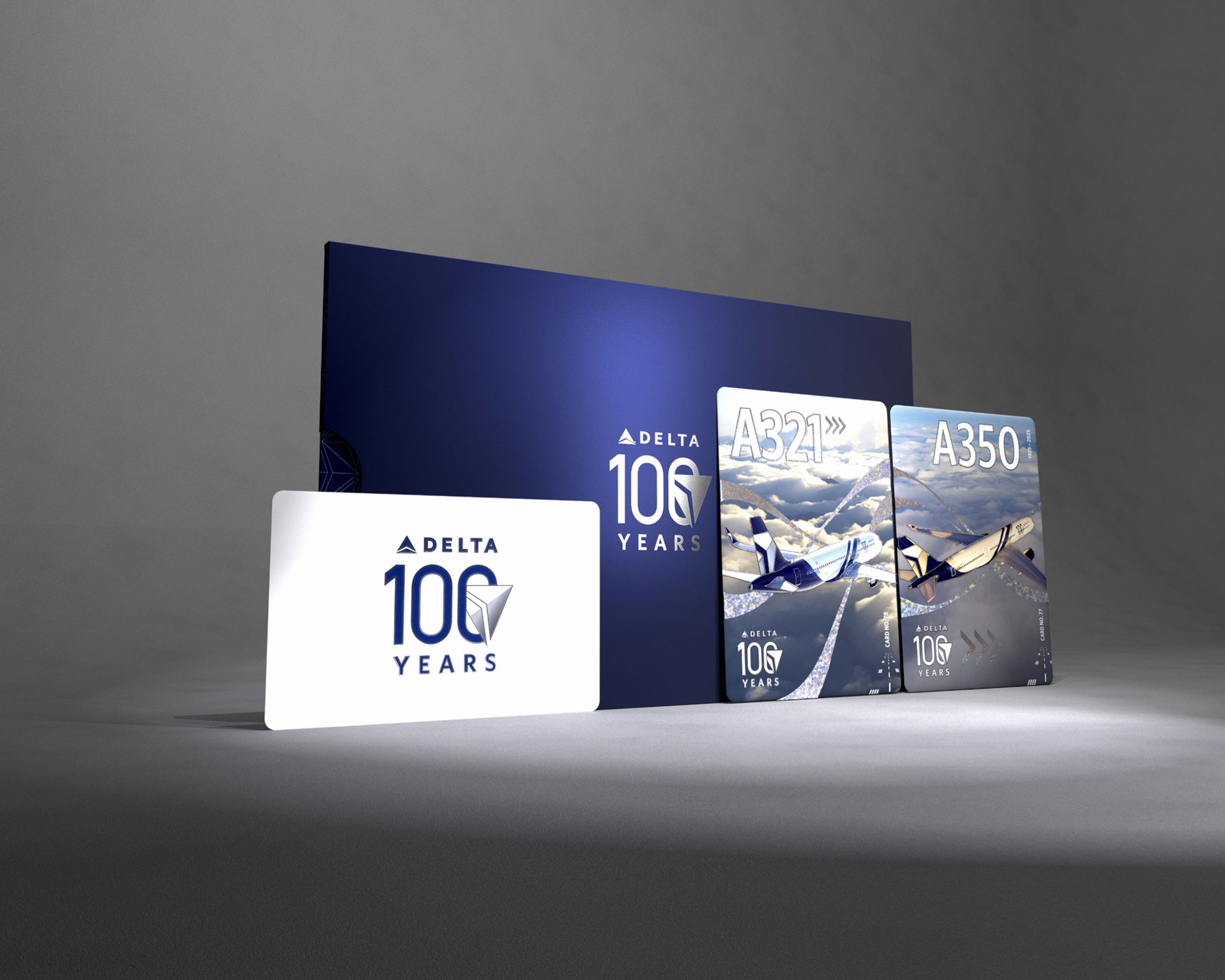 The new Centennial-themed trading card collection honors Delta’s milestone as the first U.S. airline to turn 100 with a fresh, eye-catching design – featuring the new Centennial colors and branding.